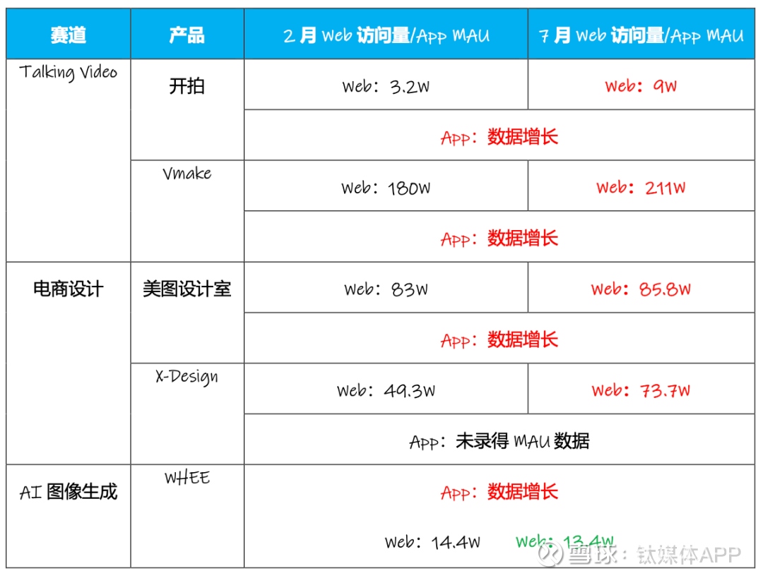 AI 商品图仍是国内美图设计室、海外 X-Design 的格局。从整体看,美图设计室仍然是国内电商设计的头部产品,海外 X-Design 的 Web 端访问量有增长,但仍没突破百万。根据财报会议的说法,美图设计室上半年添加了少量较垂的单点功能,主要精力放在了精细化运营上,增加留存与付费,上半年美图设计室的付费用户增长了 56%,未来随着与阿里合作的深化,美图设计室还会触达更多用户。