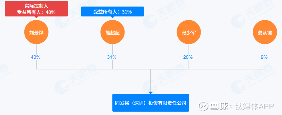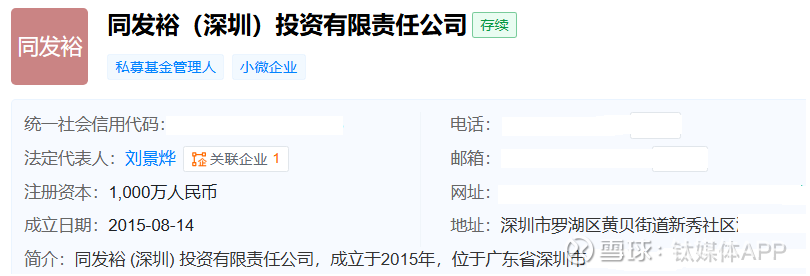 天眼查显示,同发裕成立于2015年8月14日,注册资本1000万元,法定代表人刘景烨。后者也是同发裕实控人,持有40%股权。