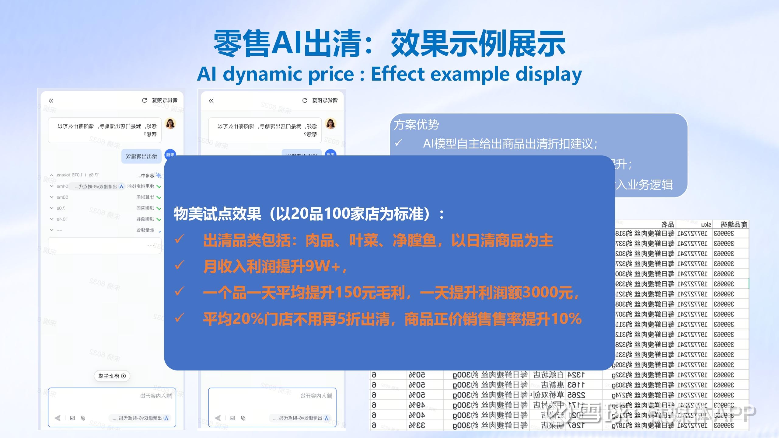 解决方案多点数智的AI商品出清系统在以上挑战中,通过多年行业客户经验积累,以及先进的技术能力,沉淀出了一套高效精准的AI应用实践方案: