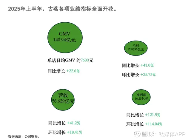 2025半年报发布,古茗单店日均售出杯数439 杯,同比增长17.4%,「部分增量来自补贴带来的需求释放。」带来的直接结果是,GMV总额达140.94亿元,单店日均GMV约7600元,同比增长22.6%。