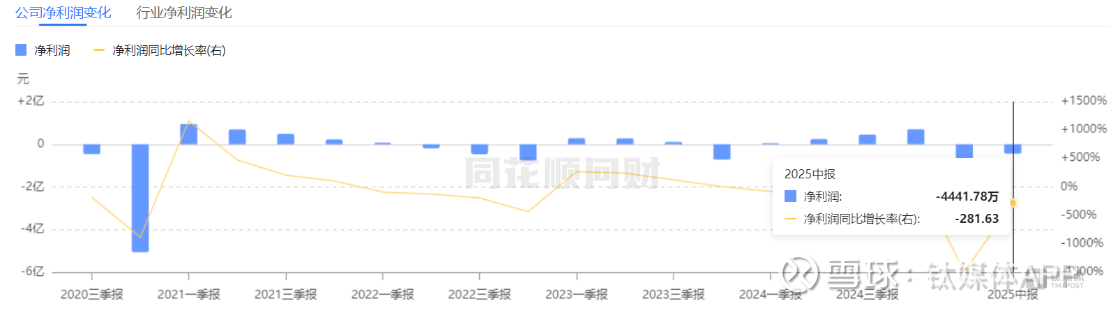 截至2025年6月30日,吴中进出口公司净资产亏空3045.85万元资不抵债,营业利润亏损9751.4万元,净亏损高达9784.9万元,财务恶化程度远超其他子公司。而同一财报期内,上市公司营收、净利双降,共计实现收入6.36亿元,归母净亏损高达4442万元,同比由盈转亏。