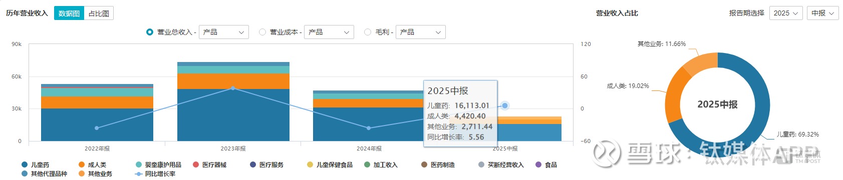 2025年中报显示,公司上半年营收2.32亿元,同比增长5.56%,归母亏损虽有5408.17万元,亏损幅度已收窄46.38%。报告期内医药行业板块表现相对稳健,营业收入同比增长9.29%,其中儿童药作为核心业务支柱,营收同比增长20.23%至1.61亿元,毛利率达62.23%。