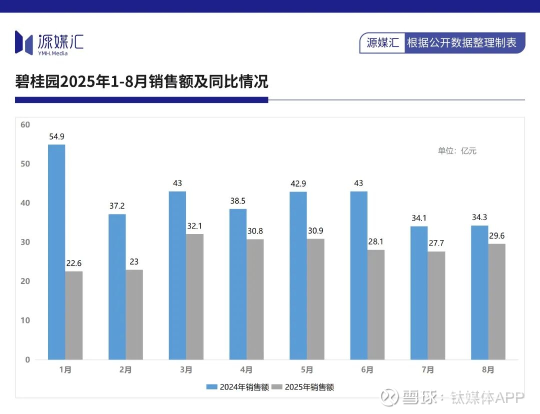 2025年前8个月,碧桂园累计归属股东权益销售额为224.8亿元,对应销售面积为272万㎡,相比前两年前8个月的销售额1488亿元、328亿元,尽管出现不同程度下滑,但自2025年3月以来单月销售额稳定在30亿元左右。