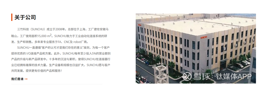收购机器人资产公开资料显示,三竹智能成立于2017年,是国家高新技术企业和安徽省专精特新中小企业。连接器是三竹智能的核心产品,应用于伺服驱动系统、机器人、工业机械手等领域,并为行业提供定制化的连接产品和方案。主要客户涵盖日本松下集团、汇川技术、先导智能、美的工业、南京埃斯顿