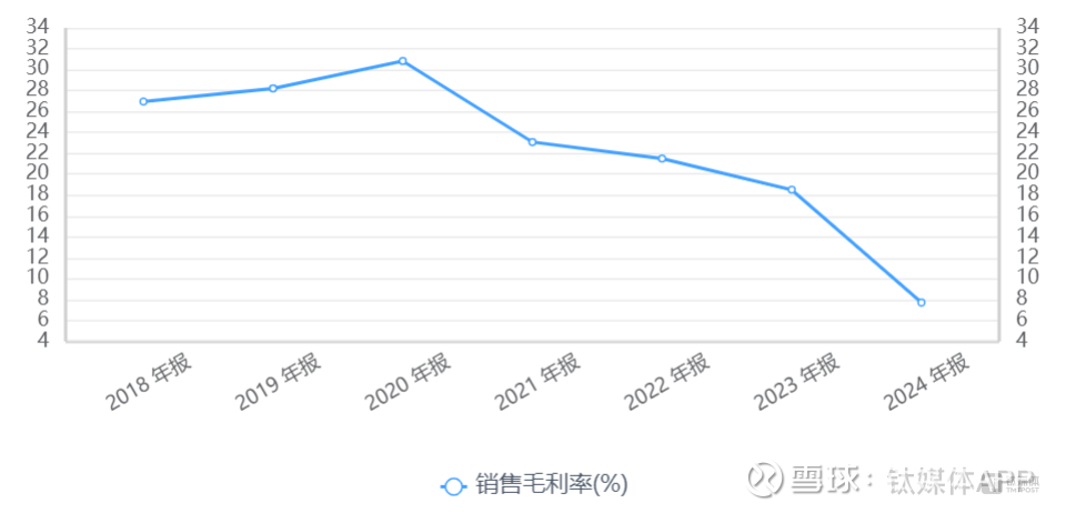 2025年上半年的财务报告显示,公司实现营业总收入2.44亿元,同比增长8.91%,从表面上看仍然维持着规模扩张的态势。但归母净利润却同比暴跌94.56%,亏损扩大至3379.95万元。更令人担忧的是,公司的毛利率从2020年的30.83%大幅萎缩至3.91%,几乎已经触及成本边缘。