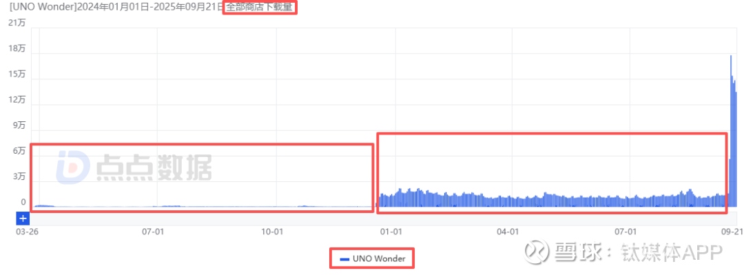 两年半时间,经历三个测试阶段,全球开测5天累计下载量超81万结合公开资料及点点数据来看,《UNO Wonder》早在2023年3月甚至更早一些便对外曝光,同时开启素材测试,但并未产生可被统计的数据。