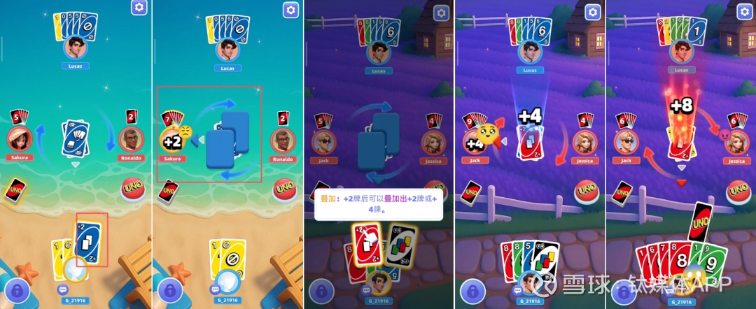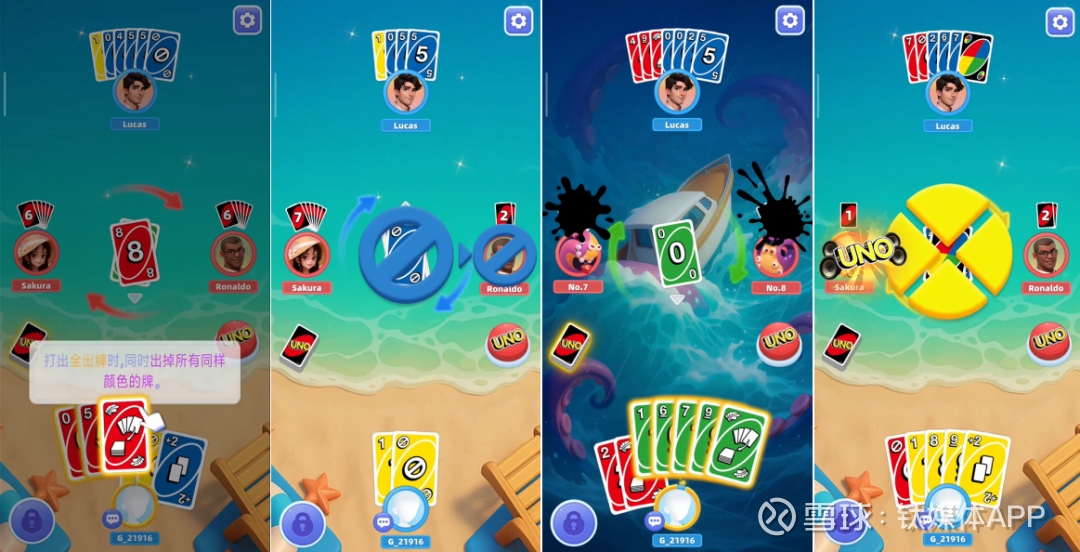 紧接着,我们将视线转回游戏本身,玩法上《UNO Wonder》依然在“UNO”玩法的框架里,单局时长在3分钟左右。