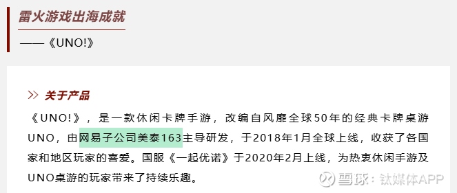 新作不惧短期成绩,《UNO!™》也曾“触底反弹”,3大重点产品外,美泰163尝试其他赛道未果关于《UNO Wonder》成绩的上限,或许可以参考《UNO!™》发展历程,而《UNO!™》的诞生与成功和其背后的厂商美泰163息息相关。