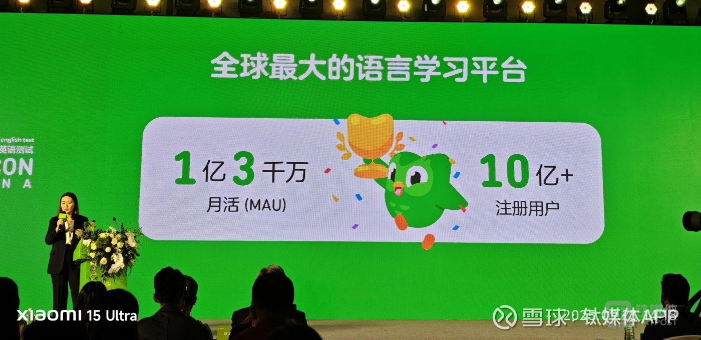 会后交流时,多邻国方面表示,中国是英语学习者第二大人口(仅次于印度),也是最大的英语考生群体,这对于多邻国的语言学习应用和英语测试业务的发展很重要。同时,尽管留学市场收缩,但多邻国在中国市场份额和机构认可度增长,语言学习应用的用户在不断增长。