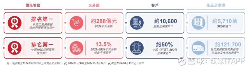 据招股书披露,京东工业当前是中国MRO采购服务市场的最大参与者。按2024年的交易额计,京东工业规模为第二名的近三倍。同时京东工业也是中国工业供应链技术与服务市场最大的服务提供商。