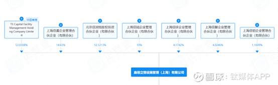 毕竟股权结构方面,嘉信立恒背后原股东阵容豪华,第一大股东为TS Capital Facility Management Holding Company Limited(TSFM),持股比例为53%,为中信资本旗下企业;上海信阗企业管理合伙企业、北京信润恒股权投资合伙企业、上海信钺企业管理合伙企业则分别持股14.83%、12.12%、10%。