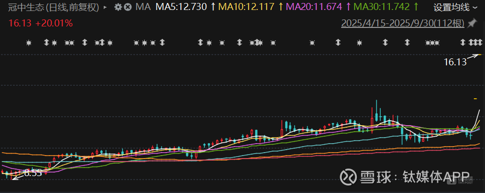 不过从目前的行情来看,杨恩光的这笔投资也将获得不菲的投资回报。如果以9月30日冠中生态收盘价16.13元来计算,杨恩光所持有的股权已经浮盈近90%。