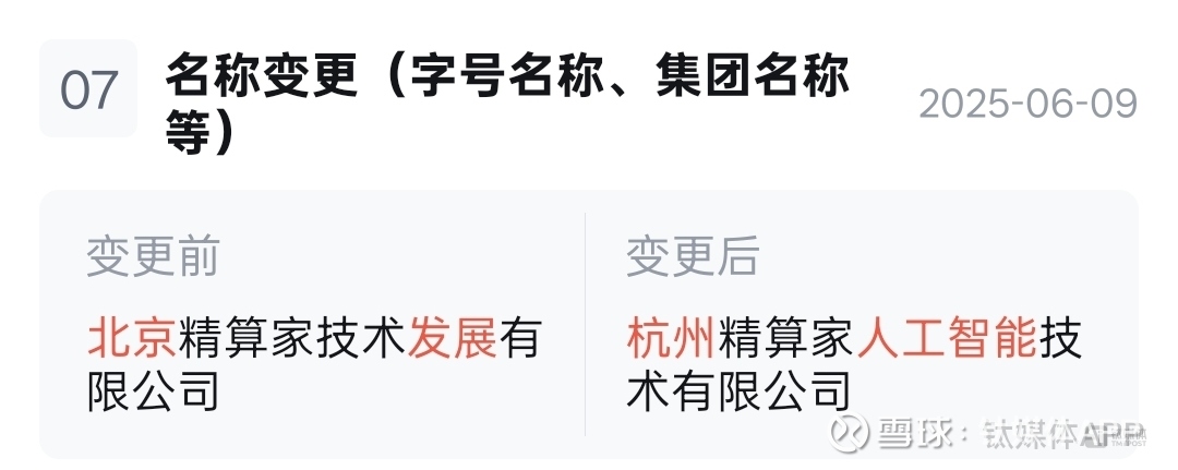 但通过天眼查APP发现,这家公司早在2022年9月就已经成立,2025年6月9日前公司名称还叫“北京精算家技术发展有限公司”。