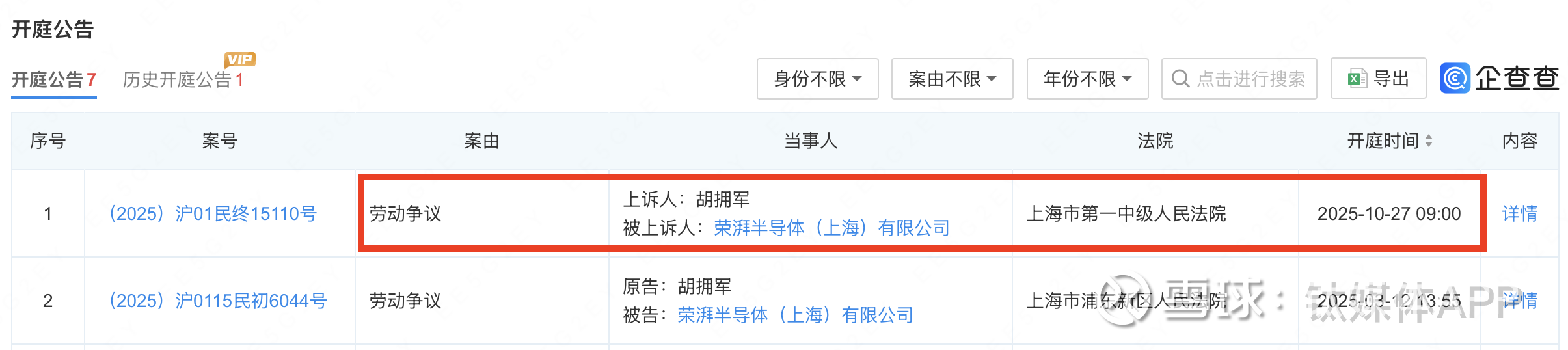 企查查显示,荣湃半导体前销售副总裁胡拥军将荣湃半导体告上法庭,案由是“劳动争议”。2025年3月一审后,胡拥军提起上诉,二审将在今年10月开庭。不过,截至目前,关于该案件的具体争议焦点与细节,尚未在公开渠道披露。