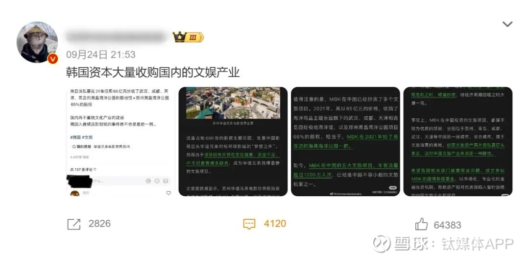 在此背景下,上周,一条关于#韩国大量收购国内文娱产业#的话题迅速引爆微博,斩获近5200万阅读与2.1万讨论。该话题中所列举的多起收购案例,进一步激起了网友对文化安全与产业主导权的广泛担忧。