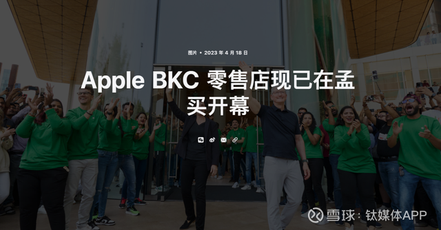 库克遥想2023年4月18日,在孟买首家苹果零售店开业那天。