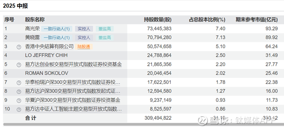 以当期收盘市值计算,该部分减持股份价值超8亿元。持续减持下LO JEFFREY CHIH也从第三大股东降至2025年Q2的第四大股东。