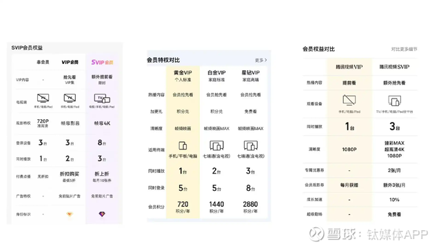 差不多同时期,腾讯视频、优酷等也悄然调整会员体系,将4K高清、杜比视听、多设备同时登录等权益,从原有VIP中剥离,划归至价格更高的超级影视SVIP或家庭套餐。