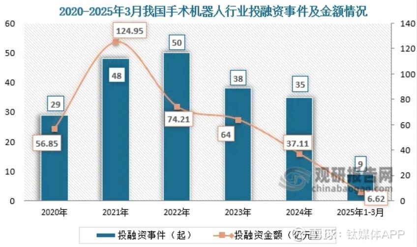 2024年,中国手术机器人行业仅完成9笔融资,这与2020-2022年年均近30笔的水平相比大幅缩水。