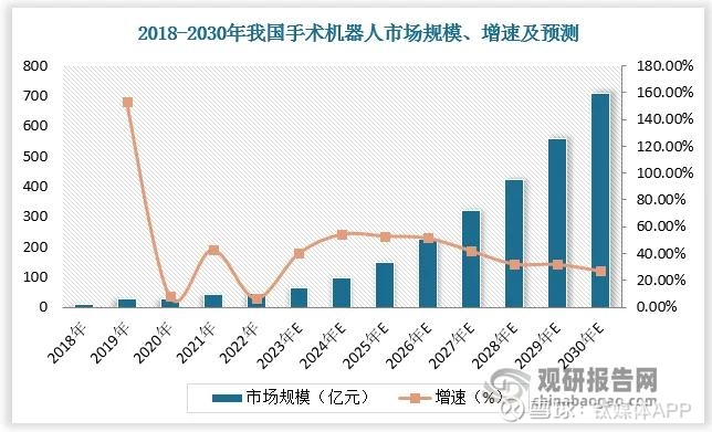 根据中商产业研究院的报告,2024年中国手术机器人市场规模达到约95.9亿元,近五年年均复合增长率达34.5%。预计2025年中国手术机器人市场规模将达到110.3亿元。