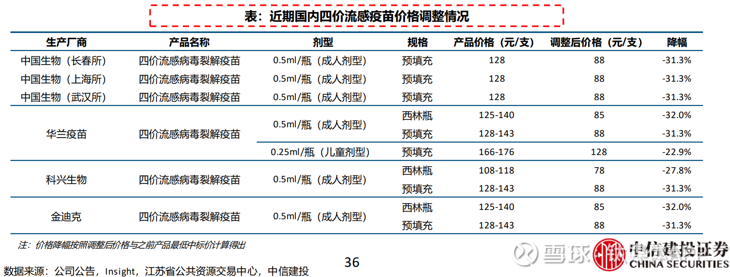 国内四价流感疫苗价格调整情况,图源:中信建投