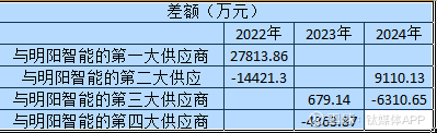 而根据Choice终端提供的明阳智能2022年-2024年前五大供应商采购数据,具体情况如下: