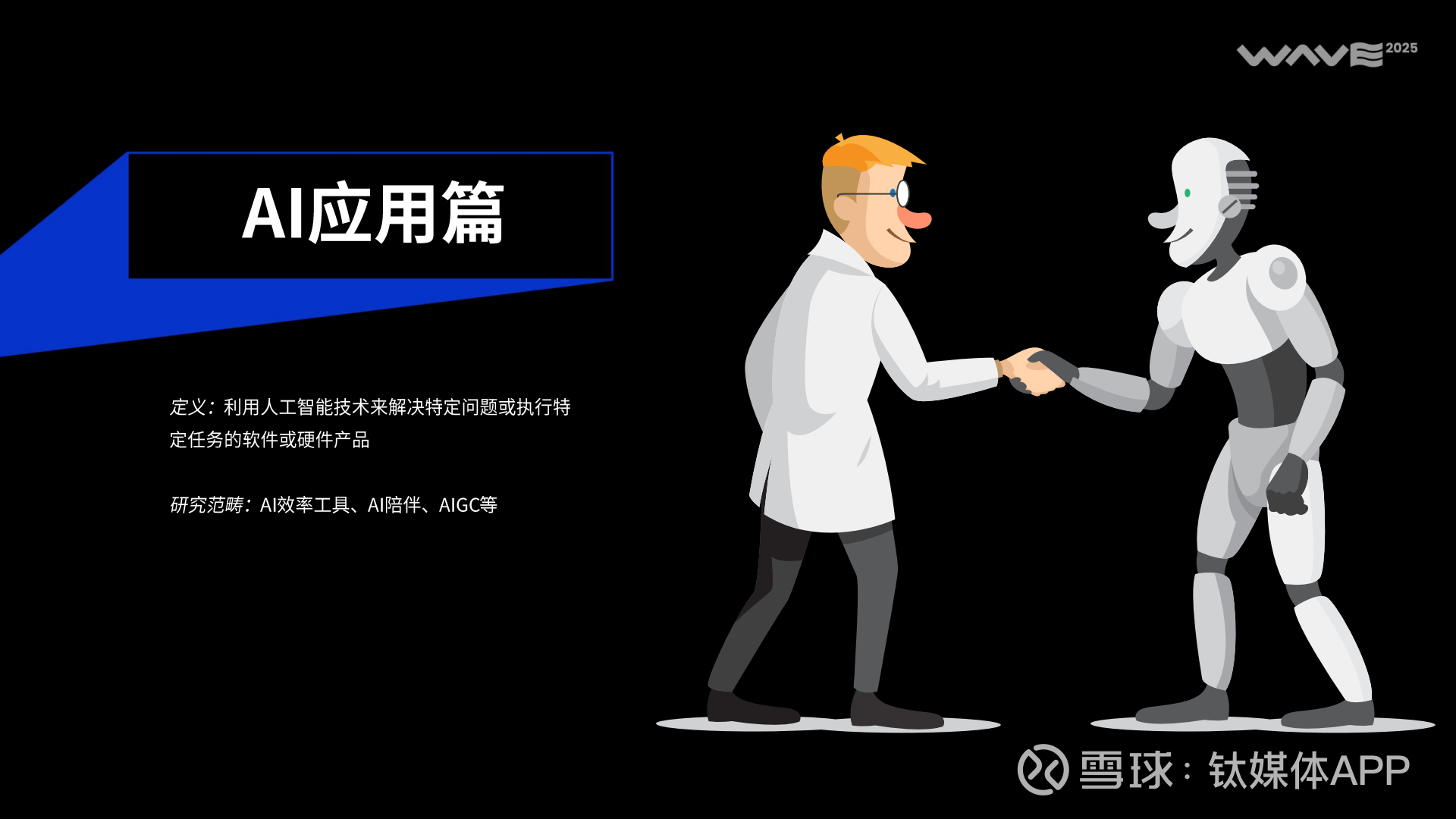 接着我们再看看AI应用出海。今年很多现象级AI应用产品出现,除了年初的DeepSeek以外,Manus引起的关注度最高。它在今年3月开启内测后就引发行业热议,邀请码一码难求。之所以如此,是因为它打造了“全球首个通用Agent产品”,实现从“工具集成”向“技术原创”的升级。目前它已经搬到海外,以美国、欧洲、日本等市场为主。