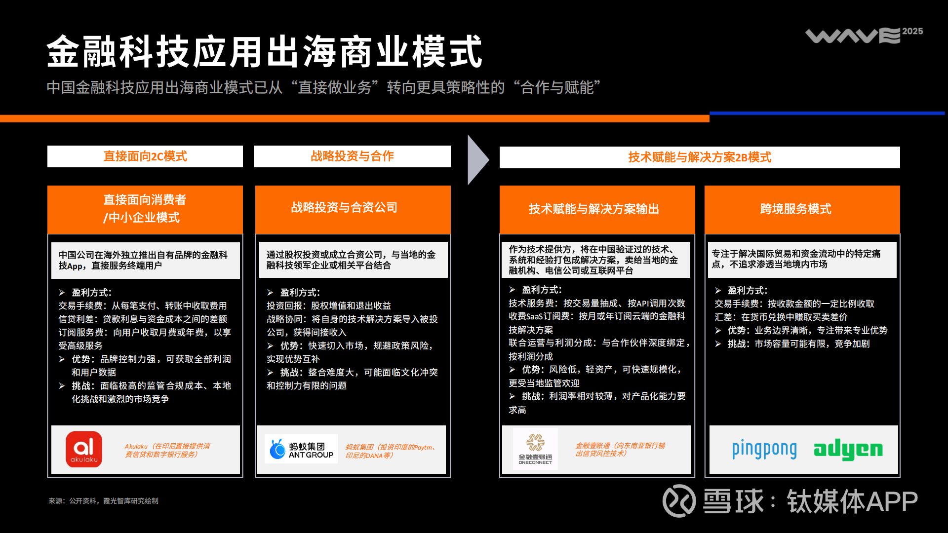 过去中国金融科技企业出海,多是直接在当地做业务,把国内的商业模式复制到海外;这两年它们正在转向更具策略性的合作与赋能的方式。