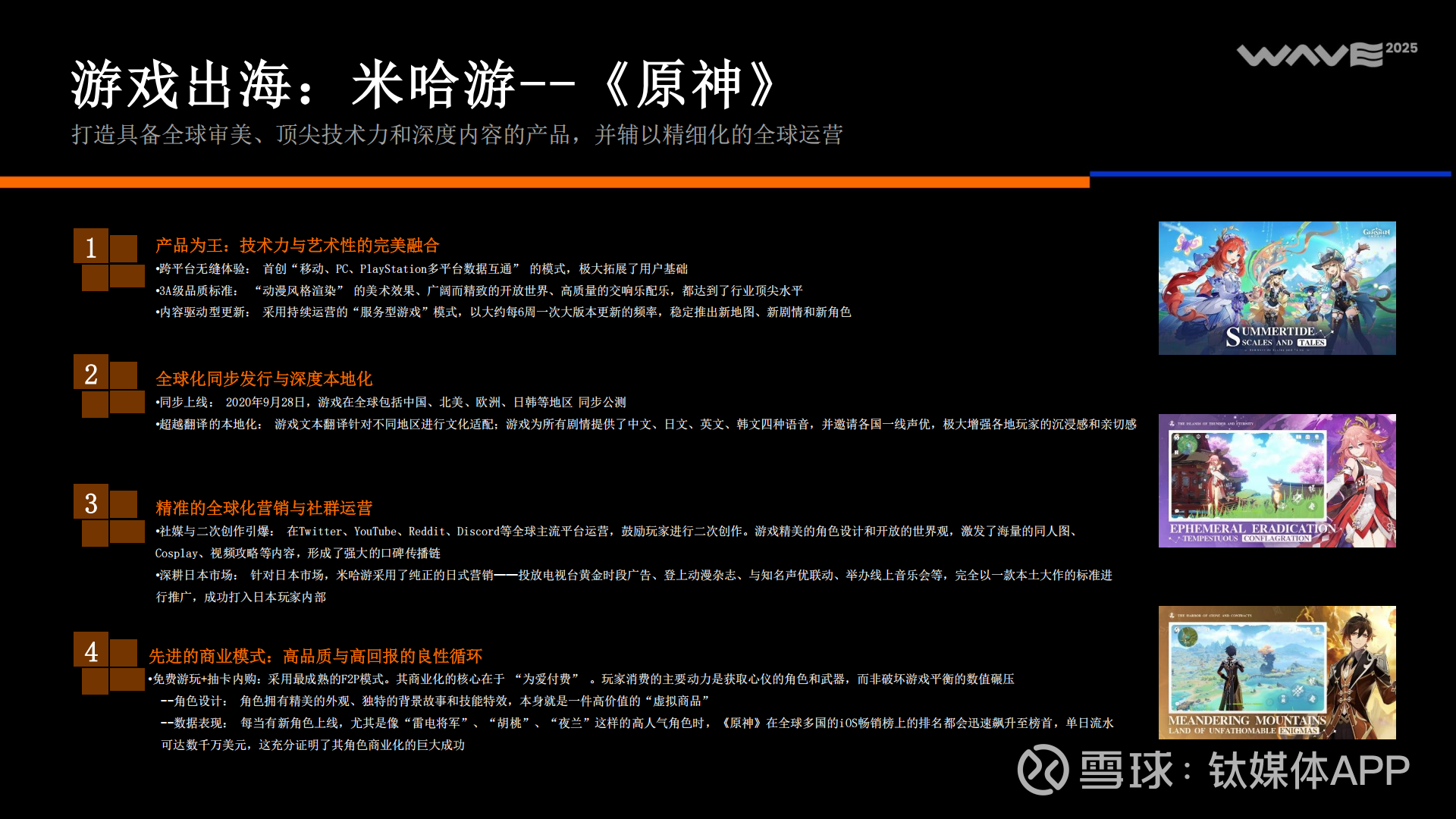 这类项目往往聚焦SLG、RPG等传统主流大赛道,典型案例就是米哈游开放世界动作RPG游戏《原神》。