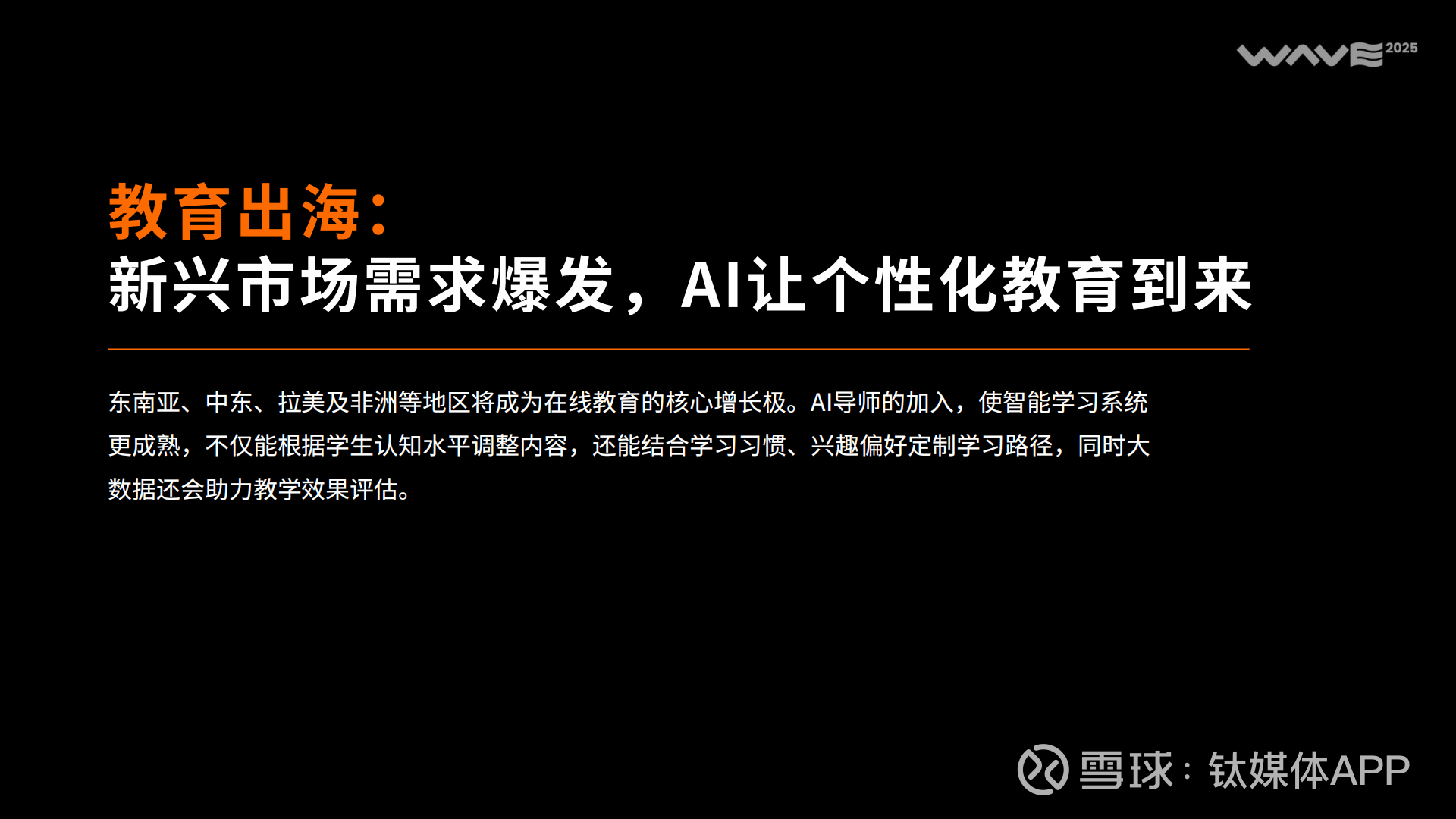 东南亚、中东、拉美及非洲等地区将成为在线教育的核心增长极。AI导师的加入,使智能学习系统更成熟,不仅能根据学生认知水平调整内容,还能结合学习习惯、兴趣偏好定制学习路径,同时大数据还会助力教学效果评估。