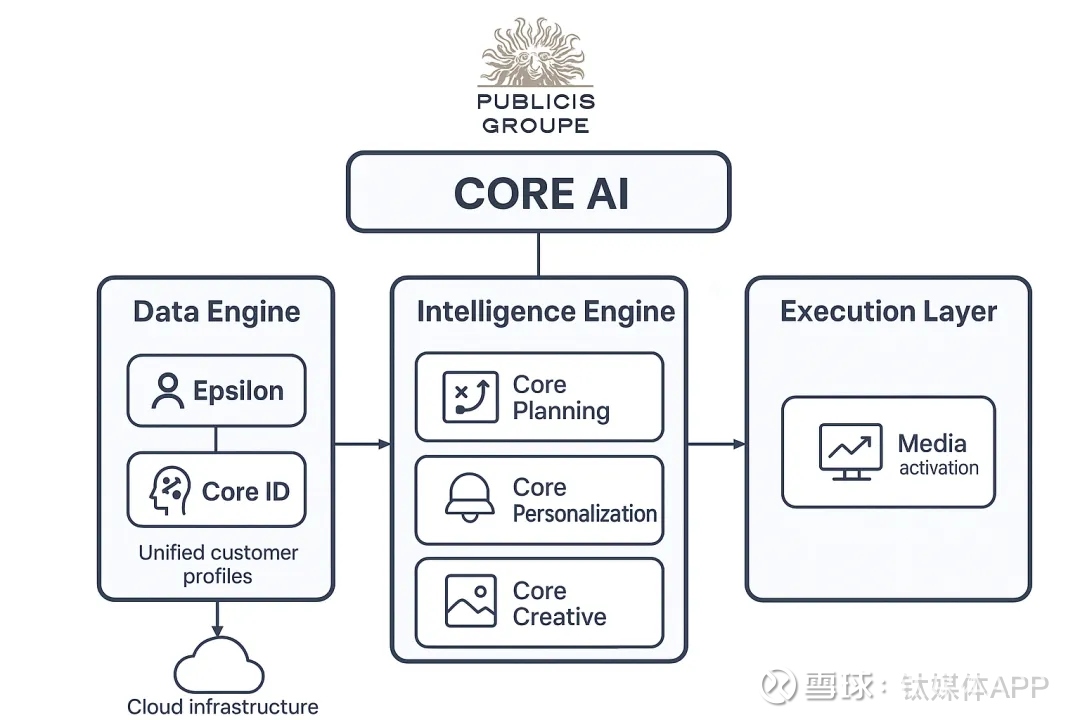 这一增长是其数年前AI 转型战略的结果,阳狮的核心武器是Core AI,一个贯穿全链路的智能中台。它不再将创意、数据、媒体、客户服务视为独立的环节,而是通过 AI 强力地将他们串联在了一起,实现了整合与效率提升。