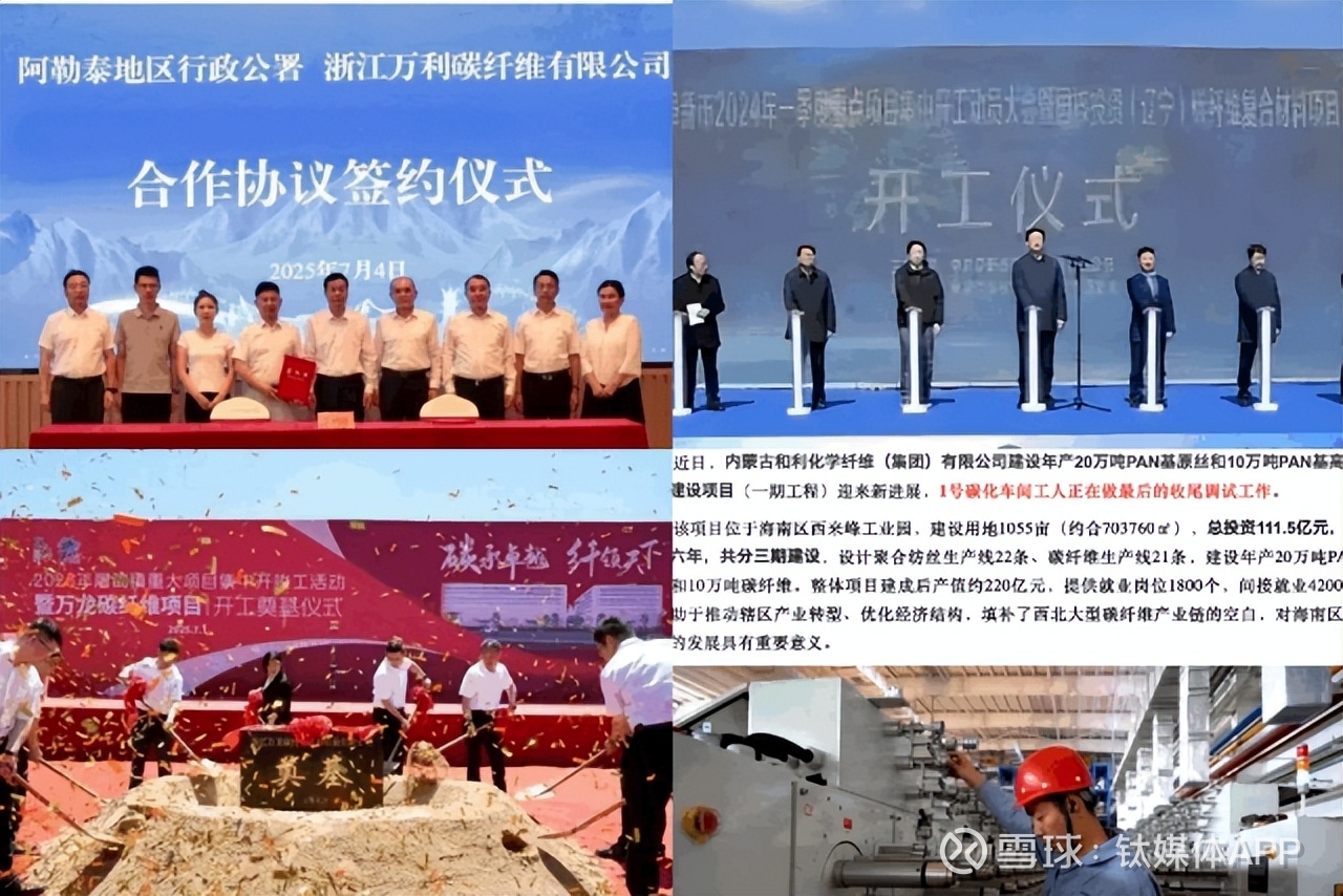 同一天,华阳集团(原阳煤集团)董事长在一次论坛上表示,公司投建的“国内首条千吨级T1000级碳纤维专业产线,将于2025年11月底竣工投产。” 该项目总投资6.82亿元,从开工到投产不到两年。