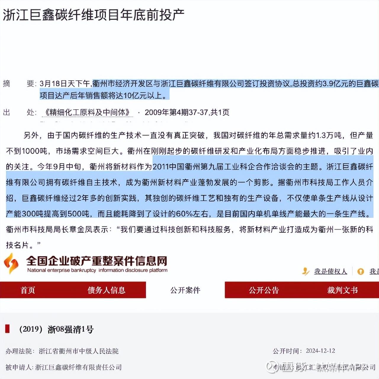 浙江巨鑫碳纤维有限公司,不仅拥有碳纤维自主技术,早年还曾建设起“国内单机单线产能最大的一条生产线”,依然倒在黎明前。