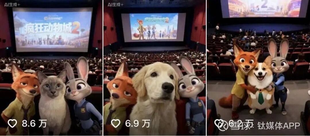 早在影片正式上映之前,社交平台上就已经出现了如何用豆包、剪映等App生成“狐兔CP”(狐狸狐尼克和兔子朱迪)亲密合照的相关攻略。在预制合照庆祝的另一边,联名活动也率先发动,“这是你最无法拒绝的疯狂动物城周边”等关键词火爆社交平台,许多人还未曾走进电影院,就已经拥有了一兜子的周边。