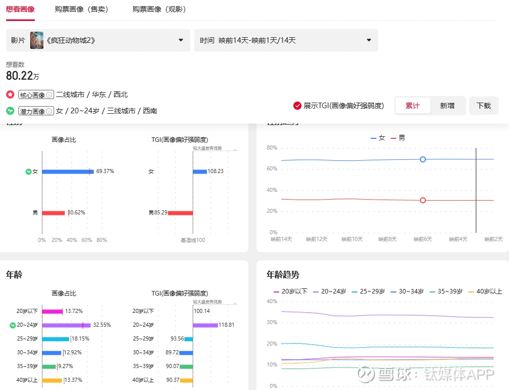 (《疯狂动物城2》的“想看”用户画像,图源猫眼专业版数据)