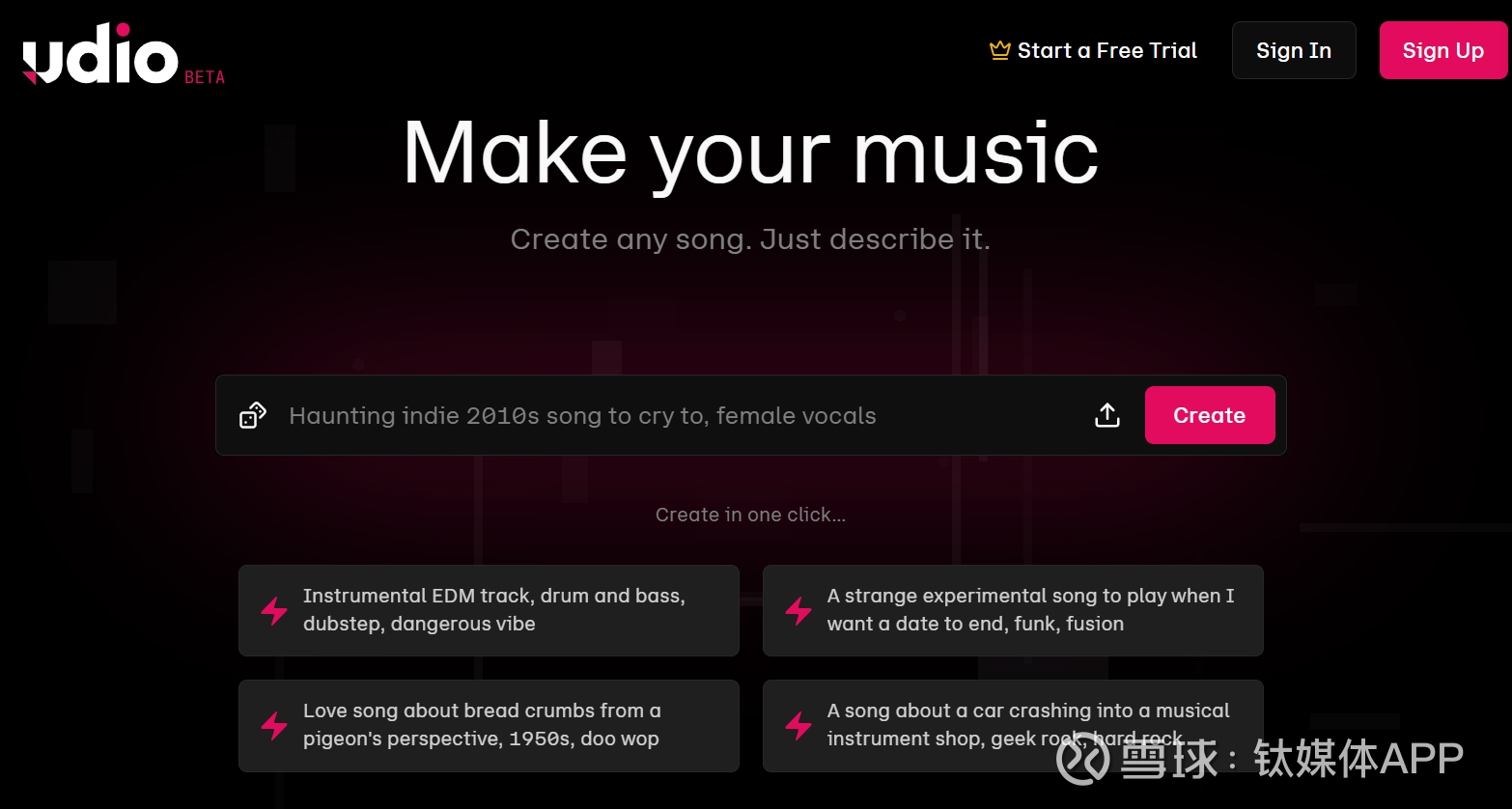 在AI音乐的垂直领域更为知名的海外玩家是Suno和Udio。两家公司均致力于让AI能够根据文字描述,直接生成包含人声、歌词和编曲的完整歌曲。