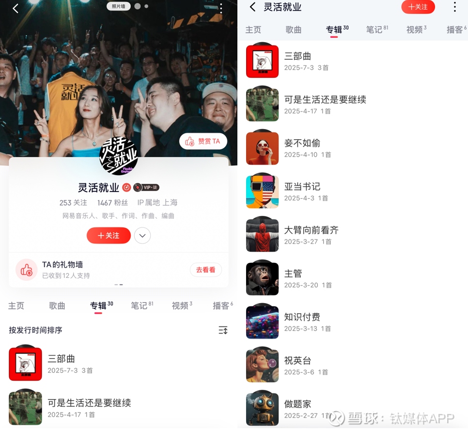 若AI仅部分介入创作,作品经过分段调整并由创作者进行重录和精修,那么平台进行技术甄别则更为困难。比如国内乐队“灵活就业”主创王博龙在播客中提及,乐队比较热门的作品《创作者中心》《菠菜去打工》等均有Suno等AI工具参与创作,有时他只是哼一小段旋律,就能让AI根据旋律把整首歌曲的编曲做完。据海克财经观察,该乐队在网易云音乐上传了超过30首歌曲,均未标注为AI音乐。
