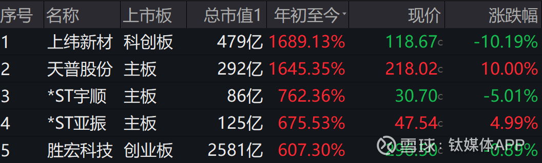 2025年以来,ST板块整体涨幅达28.33%,显著跑赢沪深300指数(18.21%)。其中,*ST宇顺、*ST亚振年内涨幅分别高达762.36%和675.53%,涨幅跻身A股第三、第四位。