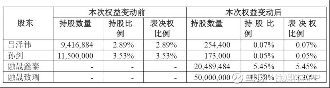1月15日,天晟新材公告,融晟鑫泰以6.39元/股受让孙剑、吕泽伟合计2048.95万股股份;同时,公司拟向融晟致瑞发行5,000万股股票。交易完成后,融晟鑫泰为融晟致瑞的一致行动人,二者合计持股达18.75%,融晟致瑞成为公司控股股东,尉立东成为公司实控人。