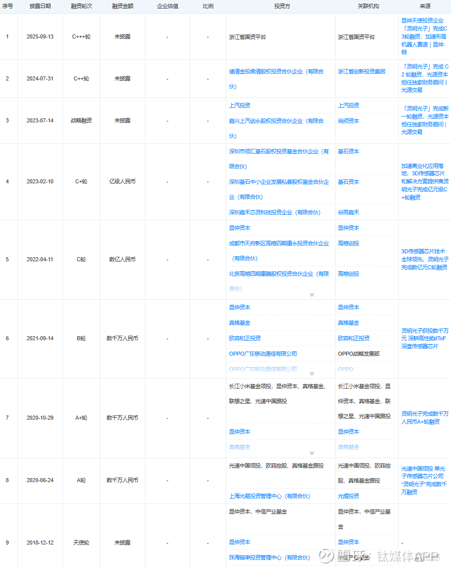 成立不到八年,完成多达9轮融资,灵明光子的融资履历堪称豪华。小米长江产业基金、高榕资本、真格基金等一线风投,以及OPPO、上汽集团等产业资本相继入局。特别是2025年9月完成的C3轮融资,引入了浙江省国资平台近亿元投资,显示了地方政府对这条硬科技赛道的重视。资本的密集“投票”背后,是对SPAD技术广阔前景的共识。