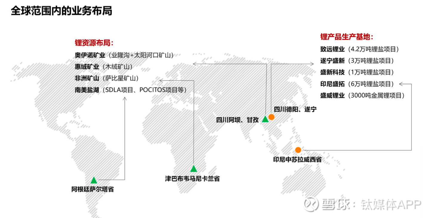 其中,奥伊诺矿业在川西地区的金川县拥有业隆沟锂辉石矿采矿权和太阳河口锂多金属矿详查探矿权,其中业隆沟锂辉石矿已查明Li₂O资源量16.95万吨,平均品位1.34%,项目已于2019年11月投产,原矿生产规模40.5万吨/年,可生产锂精矿约7.5万吨/年,太阳河口锂多金属矿目前处于探矿权阶段;Max Mind津巴布韦拥有位于津巴布韦萨比星锂钽矿项目总计40个稀有金属矿块的采矿权证,其中5个矿权的主矿种Li₂O资源量8.85万吨,平均品位1.98%,项目已于 2023年5月投产,原矿生产规模99万吨/年,可生产锂精矿约29万吨/年,其他35个矿权处于勘探阶段;此外就是惠绒矿业旗下的木绒锂矿,生产规模为300万吨/年,目前正在积极推进矿山的开发建设;另外,公司拥有阿根廷SDLA盐湖项目的独立运营权,项目年产能为2500吨碳酸锂当量,还在阿根廷投资了Pocitos、Arizaro等多个盐湖勘探项目,并积极推进其勘探工作。