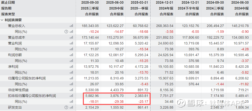 这种背离源于非经常性损益支撑。2025年前三季度,公司非经常性损益达5330.08万元,占净利润比重38.15%,主要来自金融资产公允价值变动、合并范围减少相关损益、政府补助、资产处置收益等,不具备持续性。