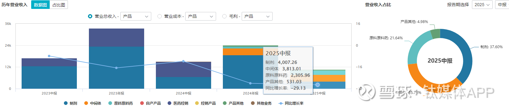 这款曾贡献公司主要收入的品种,2021年至2023年销售收入分别为4.65亿元、2.97亿元和2.31亿元,已初显疲态;集采落地后,2025年上半年制剂业务营收仅4007.26万元,同比下滑近四成,毛利率跌至13.03%,毛利额仅522万元,同比暴跌超九成。