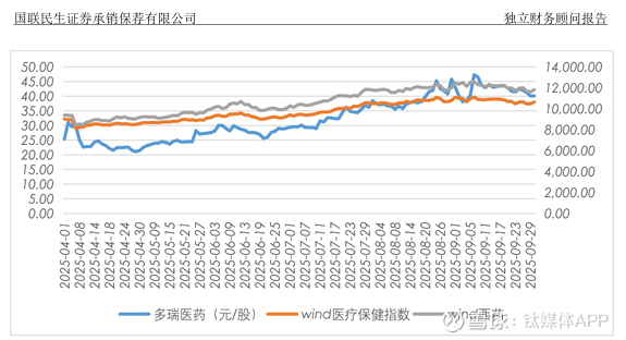 股价表现与业绩形成明显背离。2025年4月至9月,多瑞医药股价涨幅达58.23%,显著跑赢Wind医药保健指数(18.06%)和Wind西药指数(25.93%)。