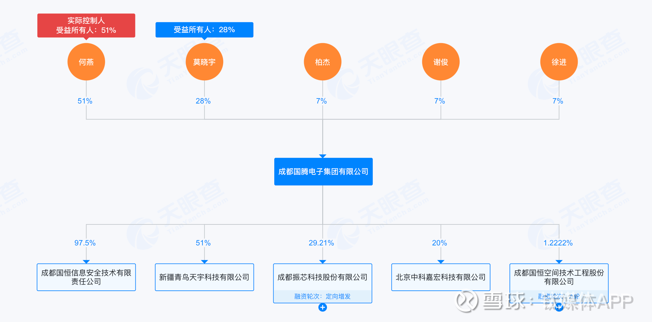 控股股东拿下5席,原董事会2人当选振芯科技前身是成都国腾微电子有限公司,成立于2003年,主营卫星定位导航、遥感等,2010年8月登陆深交所创业板。公司控股股东是国腾集团,持股29.21%;国腾集团的股东包括何燕、莫晓宇、徐进、谢俊和柏杰,分别持股51%、28%、7%、7%和7%。2025年1月15日,公司公告称,根据相关法律、法规和规范性文件的规定,结合公司的实际情况,振芯科技的实际控制人变更为何燕。