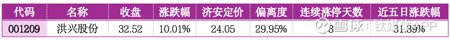 个股选择上,估值偏离度仍是核心判断依据:联发股份、赫美集团、华瓷股份等首次涨停标的,较济安定价分别低估68.98%、47.93%、43.57%,处于明显折价状态,叠加各自板块的活跃表现,具备清晰的估值修复逻辑,是短期波段布局的优选;而神马电力、章源钨业、洪兴股份等连续涨停标的,偏离度均超29%,估值泡沫化明显,其中洪兴股份业绩持续亏损,股价上涨缺乏基本面支撑,短期投机风险极高。