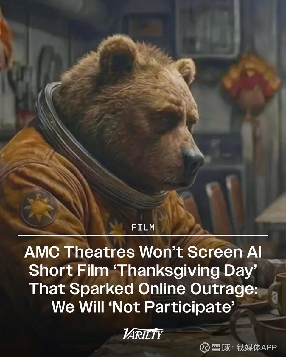 01 AI内容不配进影院?海量网友发起抵制运动,院线立即“服软”不久前,哈萨克斯坦电影人伊戈尔·阿尔费罗夫利用谷歌的Gemini 3.1和Nano Banana Pro等AI工具,创作了一部讲述熊和鸭嘴兽在太空冒险的动画短片《感恩节》。这部作品在首届Frame Forward AI动画电影节上脱颖而出,摘得桂冠。
