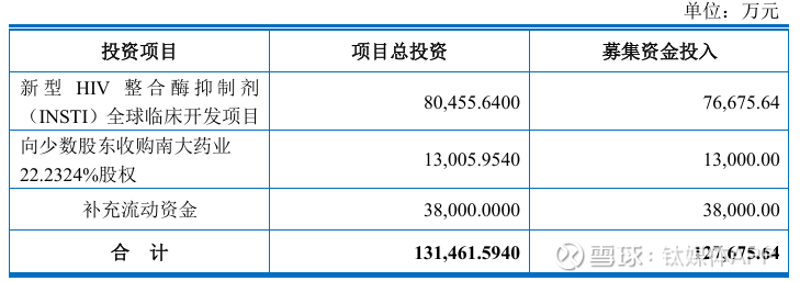 新方案中,7.67亿元将投向新型HIV整合酶抑制剂全球临床开发项目,占募资总额的60.1%,其余1.3亿元用于收购南大药业22.2324%股权,3.8亿元补充流动资金。