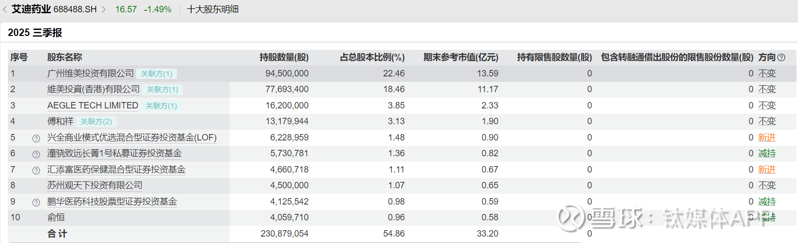 截至2025年三季度末,傅和亮、Jindi Wu夫妇合计控制公司45.43%的表决权,与其一致行动人合计控制公司49.2%的表决权。按认购上限测算,傅和亮与Jindi Wu合计控制的公司股份比例将降至35.49%,尽管仍为实际控制人。