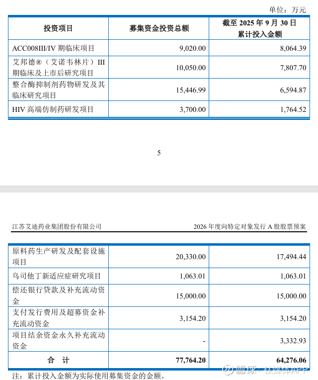 回溯公司前次募集资金使用情况,首次公开发行股票募集的7.64亿元净额中,除“整合酶抑制剂药物研发及其临床研究项目”和“HIV高端仿制药研发项目”仍在推进外,其他项目均已实施结束。
